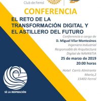 Será a las 20,00 horas en el Hotel Carrís Almirante a cargo de Miguel Vilar Montesinos, ingeniero de NavantiaEl Rotary Club Ferrol organiza este lunes, 25 de marzo, a partir de las 20,00 horas, en el Hotel Carrís Almirante, una conferencia sobre los astilleros públicos de la ría de Ferrol, que será impartida por Miguel Vilar Montesinos, ingen…[Leer más]